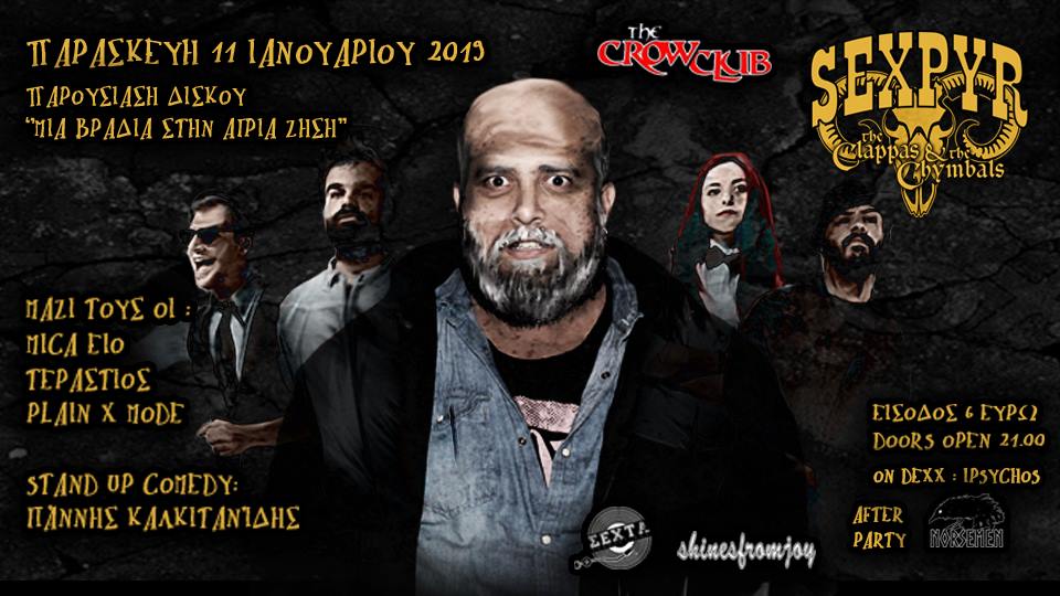 Την Παρασκευή 11 Γεννάρη ο SexPyr The Human Man & OI The Clappas & the Chymbals θα σας παρουσιάσουμε λάηβ τον υπέρτατο,κινηματογραφικό,χορευτικό,φαντασμαγορικό,τρισδιάστατο και μινιμαλιστικό δίσκο...