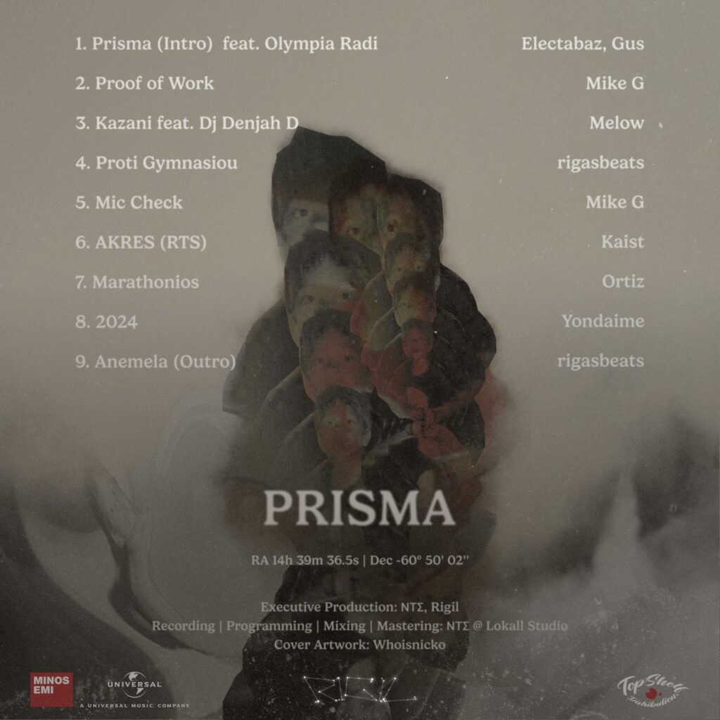 Τη μουσική και την παραγωγή του δίσκου υπογράφουν οι Electabaz και Gus («Prisma (Intro)»), Mike G («Proof of Work», «Mic Check»), Melow («Kazani»), rigasbeats («Πρώτη Γυμνασίου», «Ανέμελα (Outro)»), Kaist («AKRES (RTS)»), Ortiz («Μαραθώνιος») και Yondaime («2024»).