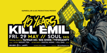15 Χρόνια Kill Emil – The Anniversary Party! (ft. Taiwan Mc, Big Shine, Twinsanity) Παρασκευή 29 Μαΐου Soul Skg (26ης Οκτωβρίου 104, Θεσσαλονίκη) Main Act...
